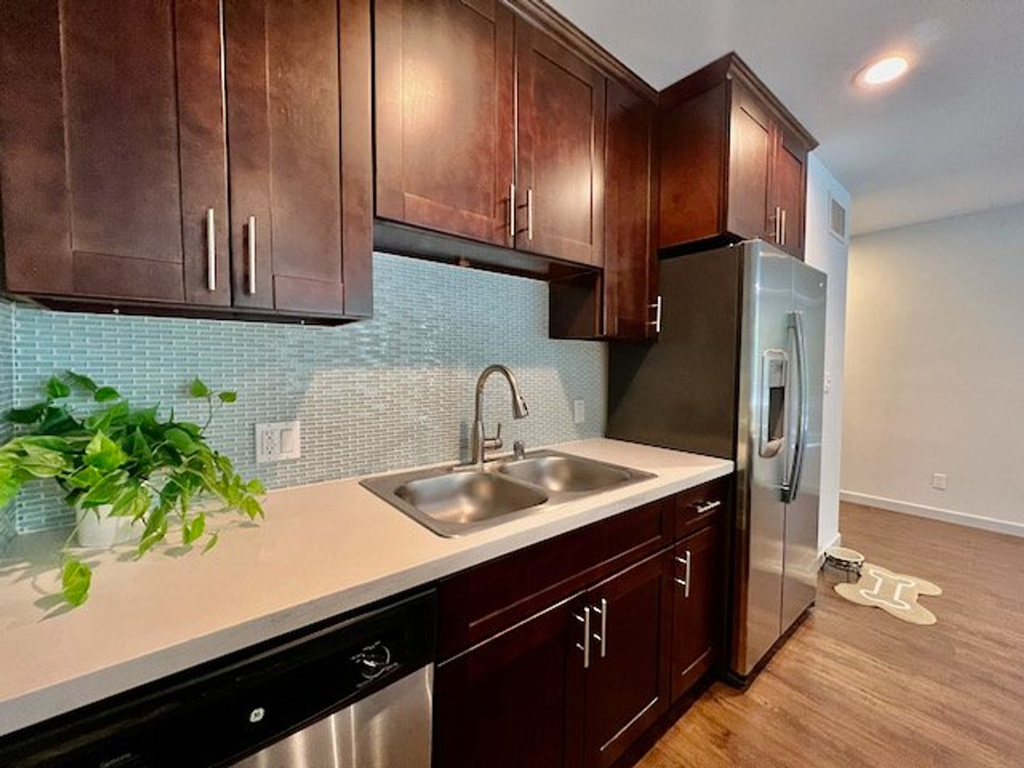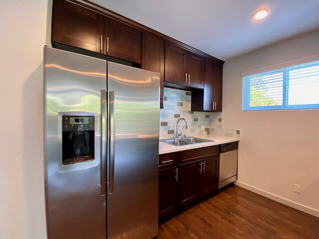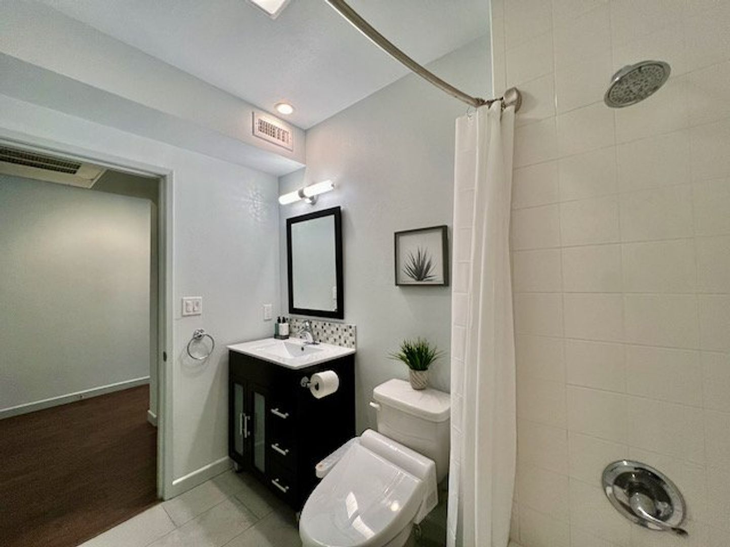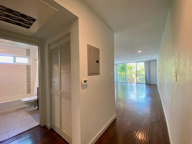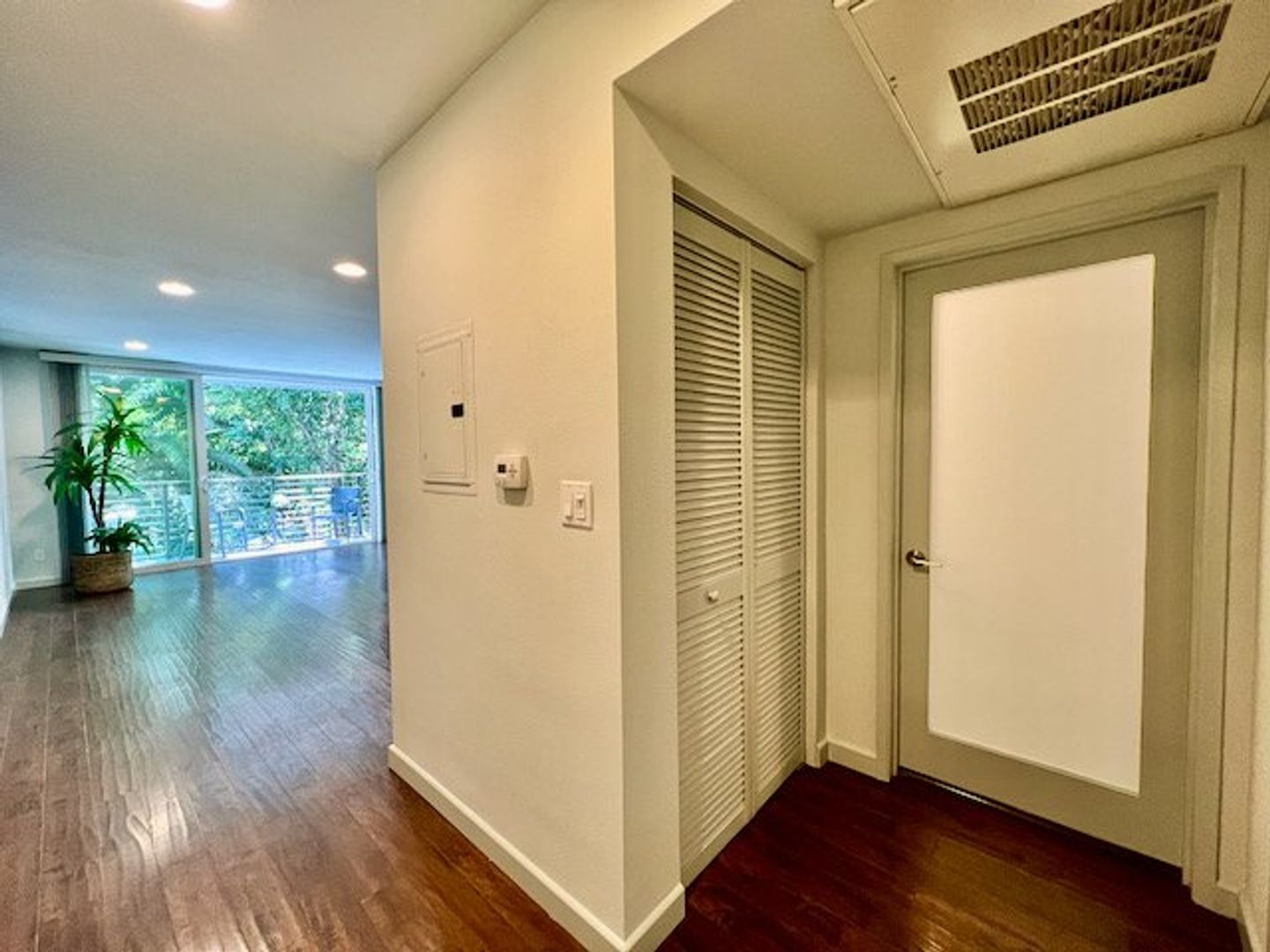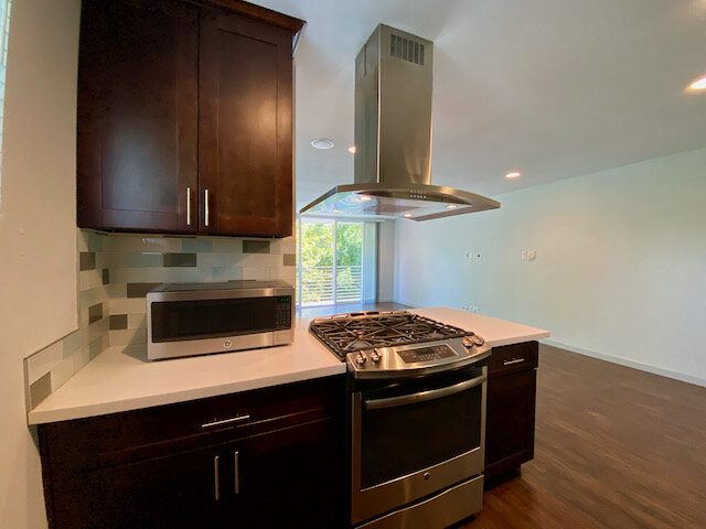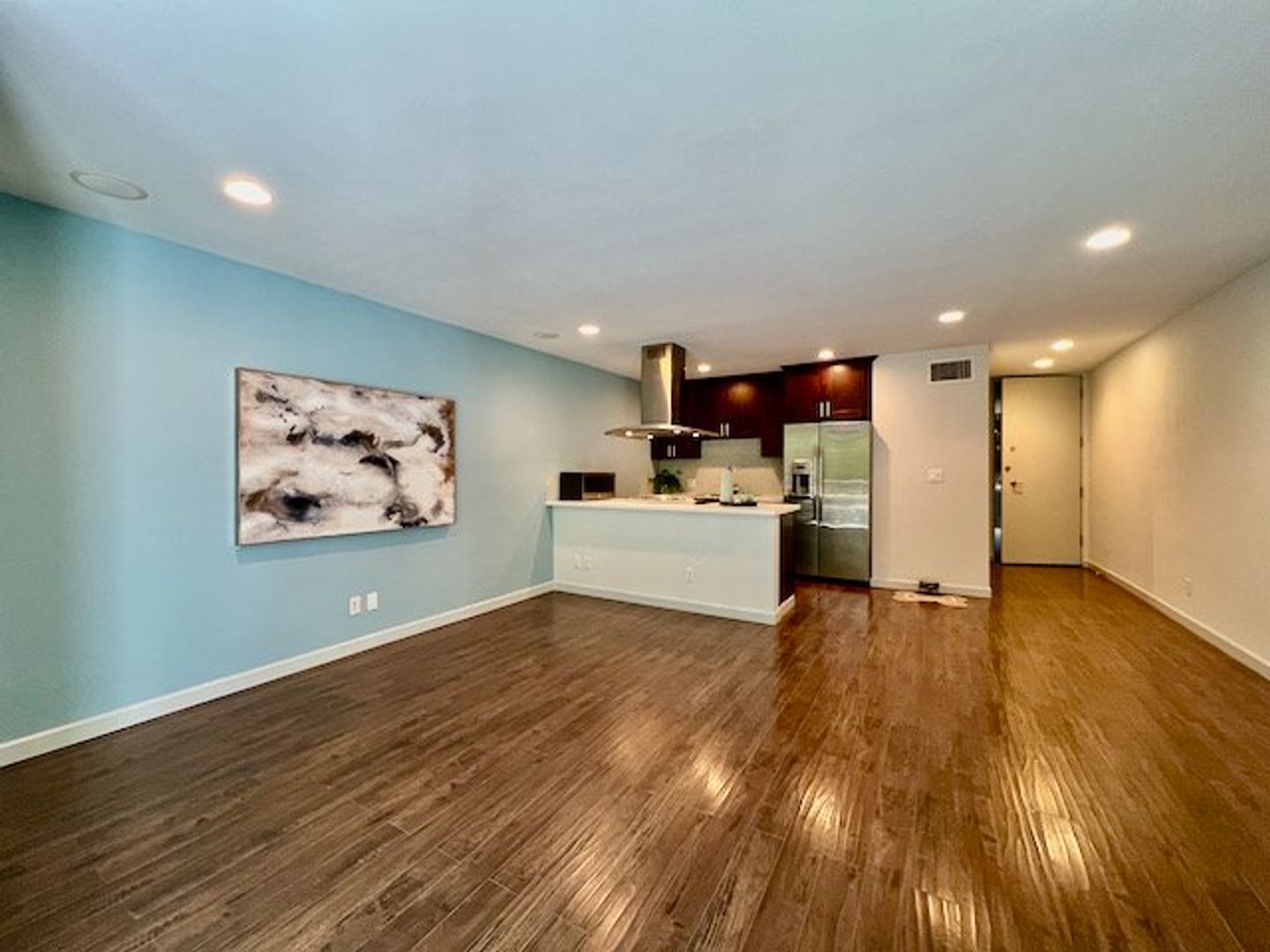 COMPLETELY RENOVATED First Floor 1 BR/1 BA unit w/ luxury appointments and huge floor-to-ceiling windows opening to a balcony offering a sweeping view of the Hollywood tree line. Completely renovated w/ the latest designer features and appliances, including new dark hardwood floors, custom recessed lighting, frosted glass doors, in-unit washer/dryer and central AC & Heating. Cable/internet ready, blue tooth iPhone cradle and speaker system and 2 custom outlets for easy wall-mounted flat screen television installation. Gorgeous center island kitchen is light and bright and offers dark wood wrap cabinets, Caesar stone counters, custom tile splash guard, brand new stainless steel appliances and a ceiling mounted hood over the gas range. Community amenities include a swimming pool, intercom access, and controlled- access parking. All the quiet of the canyon while just steps from Hollywood & Highland! Across the street from a small private (members only) dog park.For showings, please contact Tierra at 530-604-6766 or Jeff at 516-205-3878