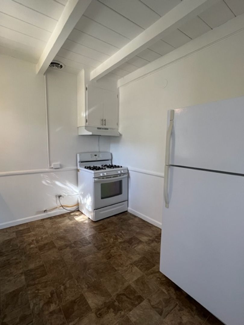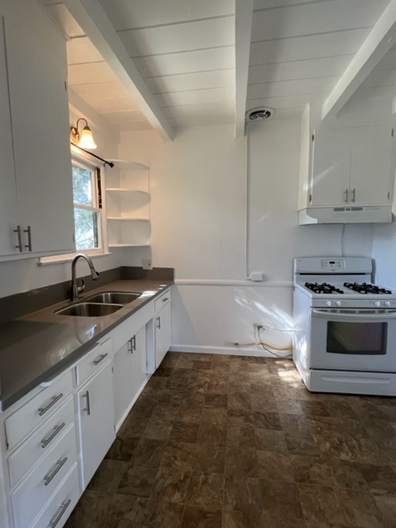 This unit comes with beautiful quartz counter tops, fridge, gas stove, and laminate hardwood floors.